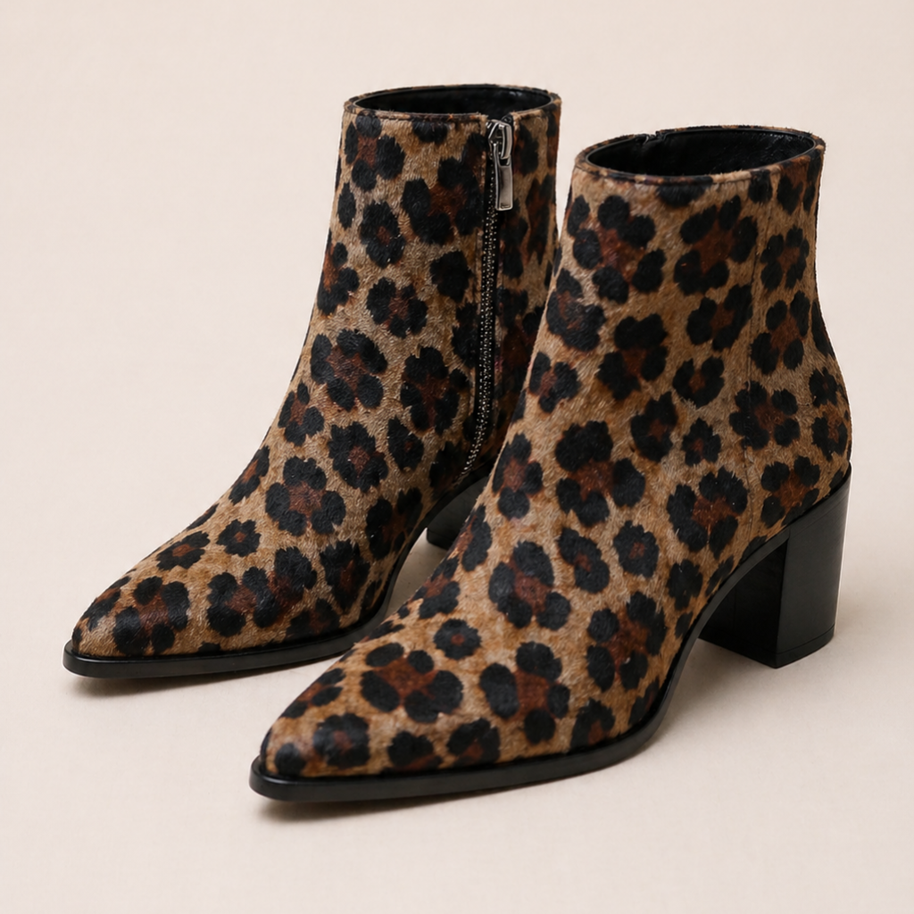 Botineta en cuero con estampado animal print, EDICIÓN LIMITADA. Un modelo con presencia, pensado para destacar sin esfuerzo.